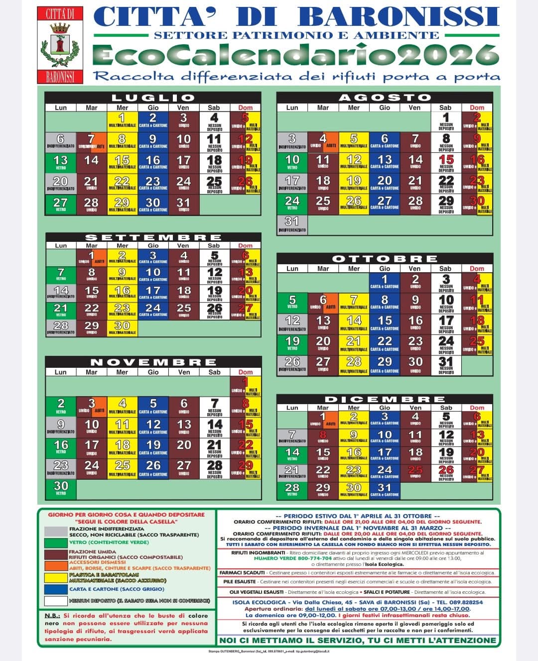 Documenti File allegati CalendrifiutiBaronissi 2026 (File pdf 2,83 MB) Eco 1 semestre (File image/jpeg 238,04 kB) Eco 2 semestre (File image/jpeg 235,50 kB)