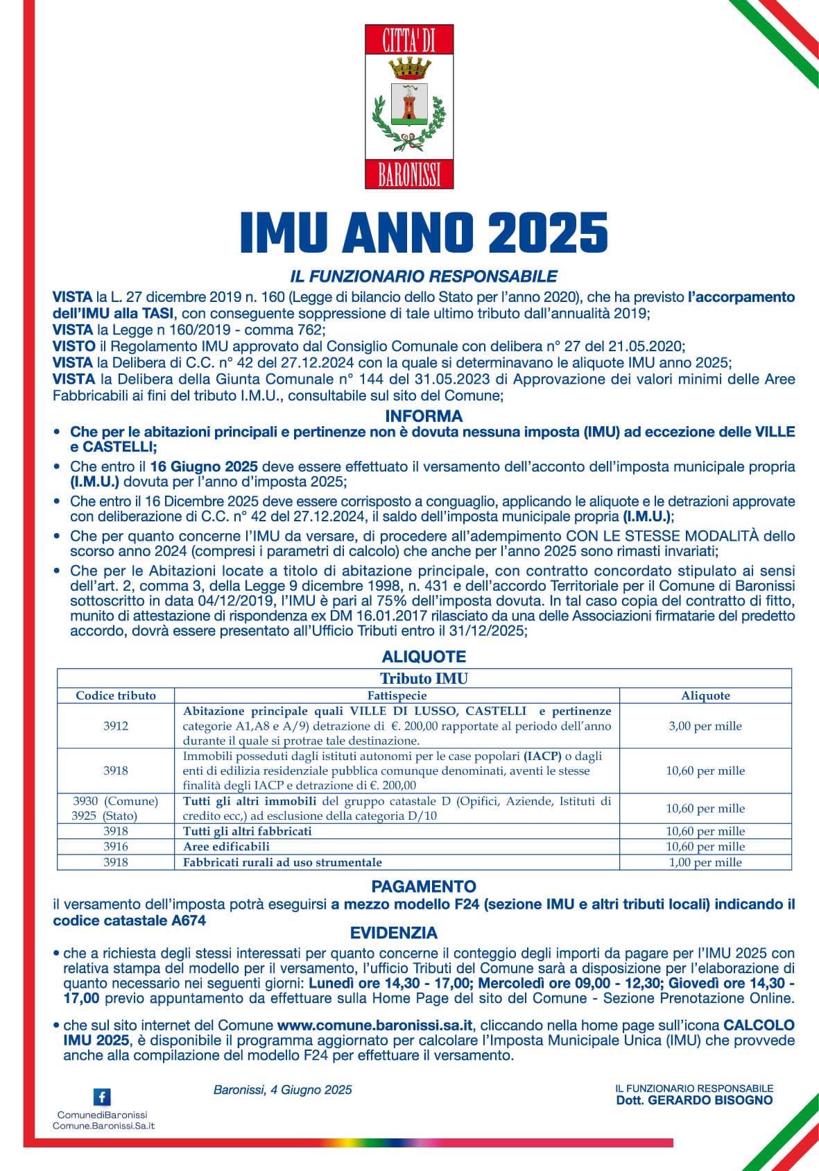 Informativa sul calcolo dell' imposta municipale unica (Imu) anno 2025