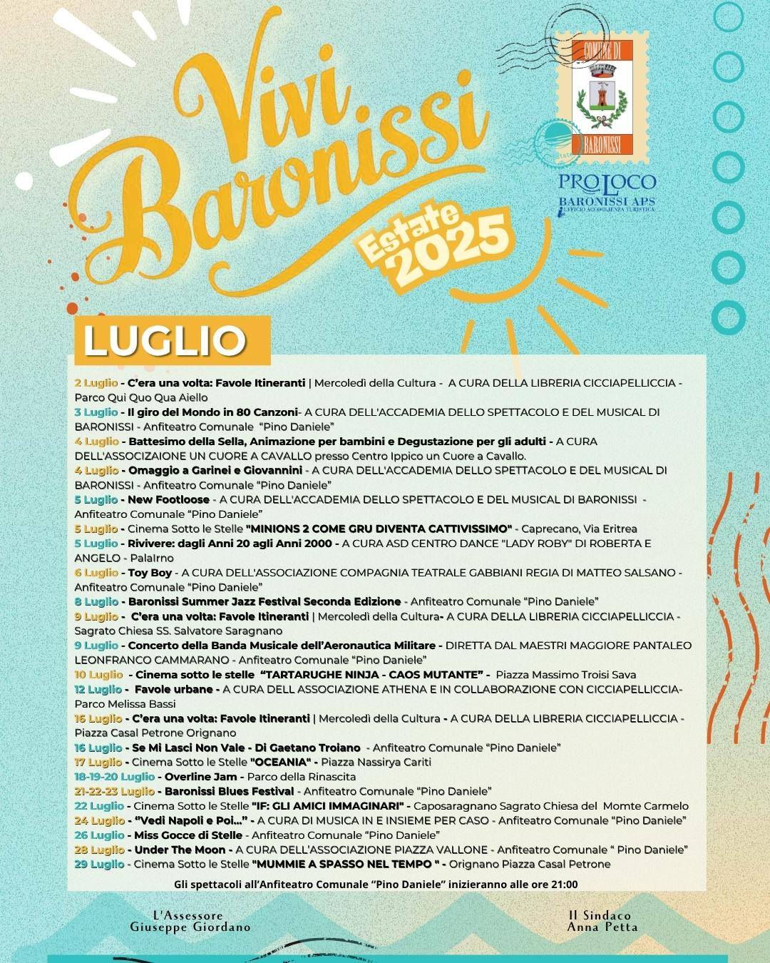 Le note del blues e del jazz risuoneranno nell’anfiteatro, i sorrisi dei bambini illumineranno le piazze, le storie prenderanno vita tra racconti, luci e movimenti.Non è solo un cartellone di eventi: è un’estate pensata per tutti, ovunquePer chi ama la cultura, per chi cerca relax, per chi vuole meravigliarsi anche restando a due passi da casa.Vivi Baronissi Estate 2025 è iniziata. E quest’anno sarà davvero indimenticabile.