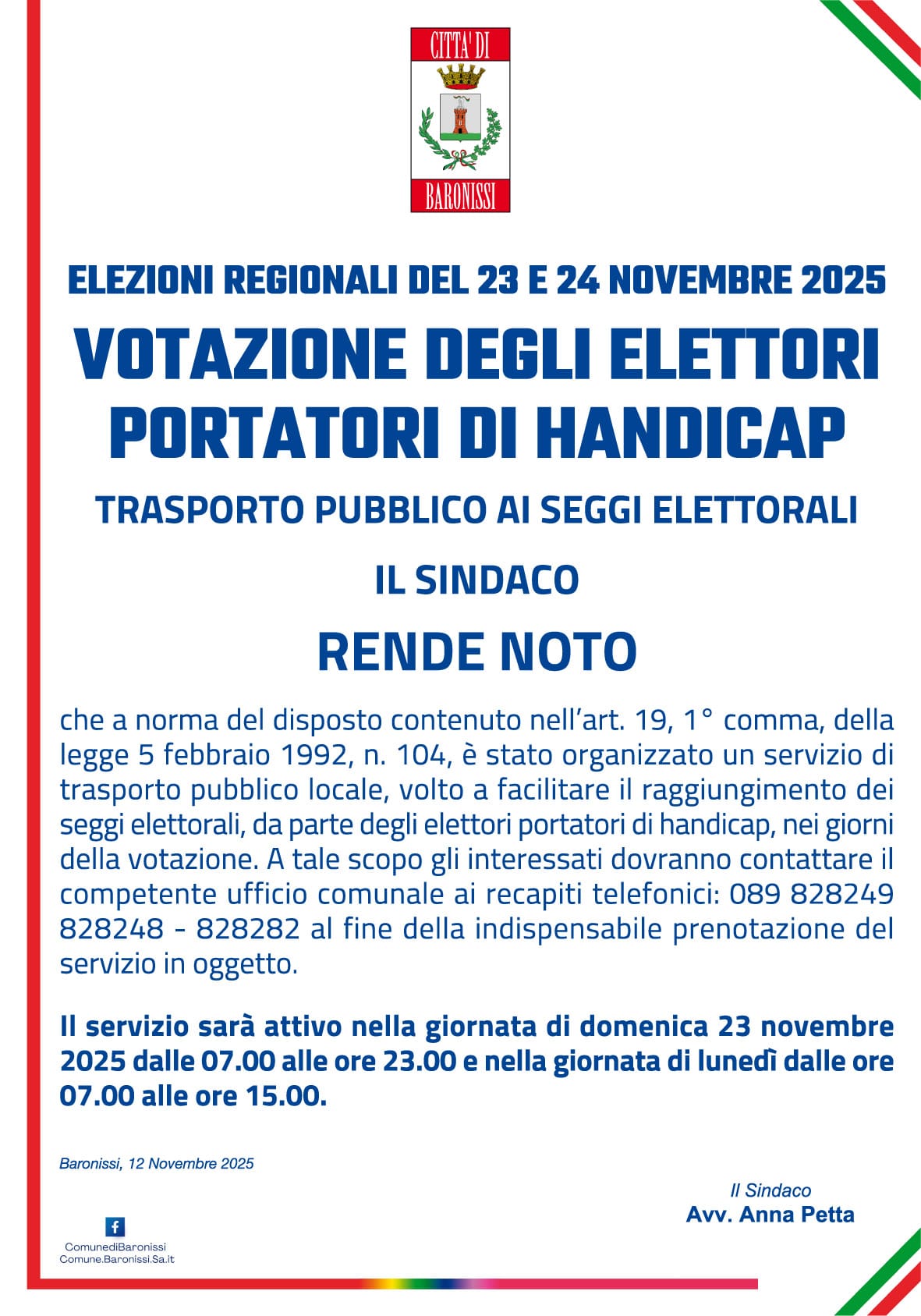 Descrizione Il servizio sarà attivo nella giornata del 23 novembre 2025 dalle ore 7.00 alle ore 23.00 e nella giornata del 24 novembre dalle ore 7.00 alle ore 15.00.